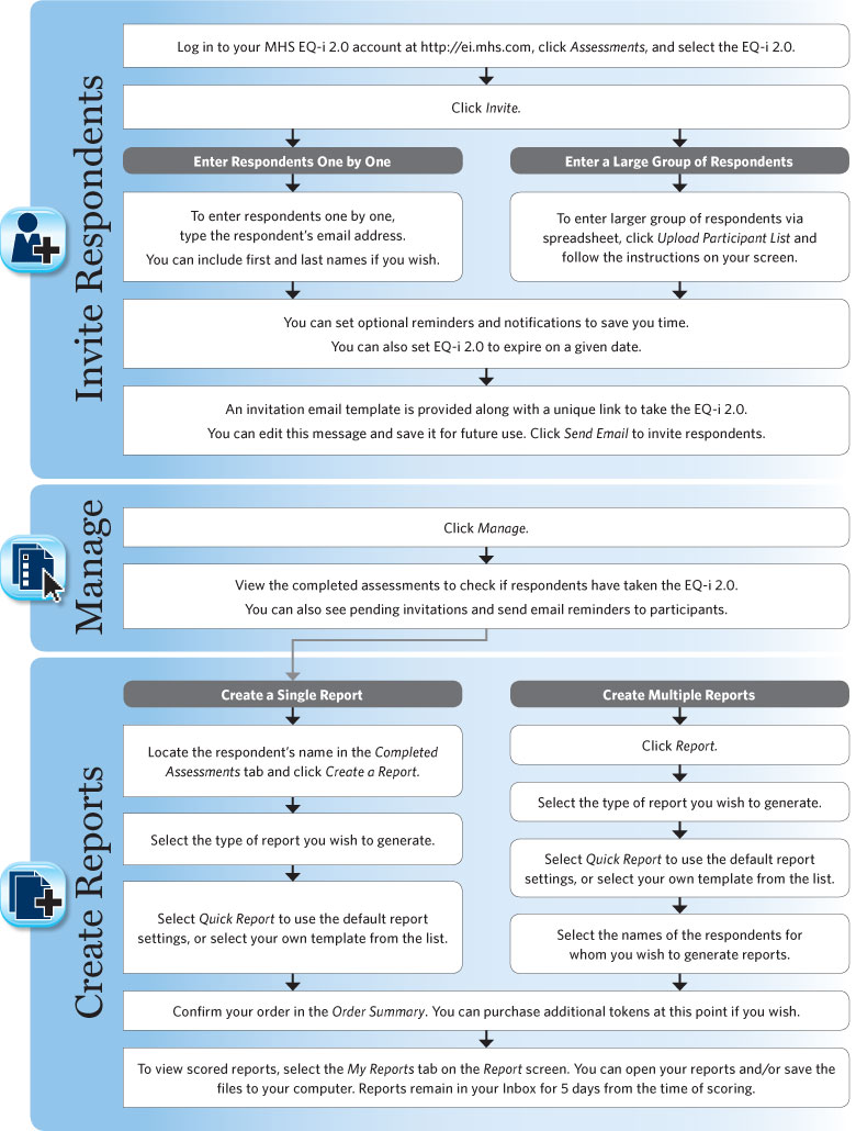 On this page, you will find information on using your EQ-i® 2.0 Portal account, preparing respondents for taking the EQ-i 2.0, and selecting the EQ-i 2.0 report options that are right for you. The EQ-i 2.0 Portal site is constantly evolving, so to ensure you have the most up-to-date information, the major administrative steps are outlined here, while finer details of setup and scoring are available in your EQ-i 2.0 online Help.